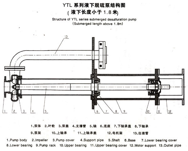 轮、泵盖、下耐磨滑动轴承、中间磨滑动轴承、支撑管、泵架、轴等部件组成。